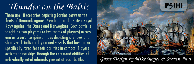 Can you, as the commander of the Swedish fleet, maintain control of the crucial sea lines of communication and supply to your Baltic holdings? Or, as the commander of the Danish fleet, retain control of the Sound and ensure the security of the Capital city of Copenhagen? Now you can find out in Thunder on the Baltic!
